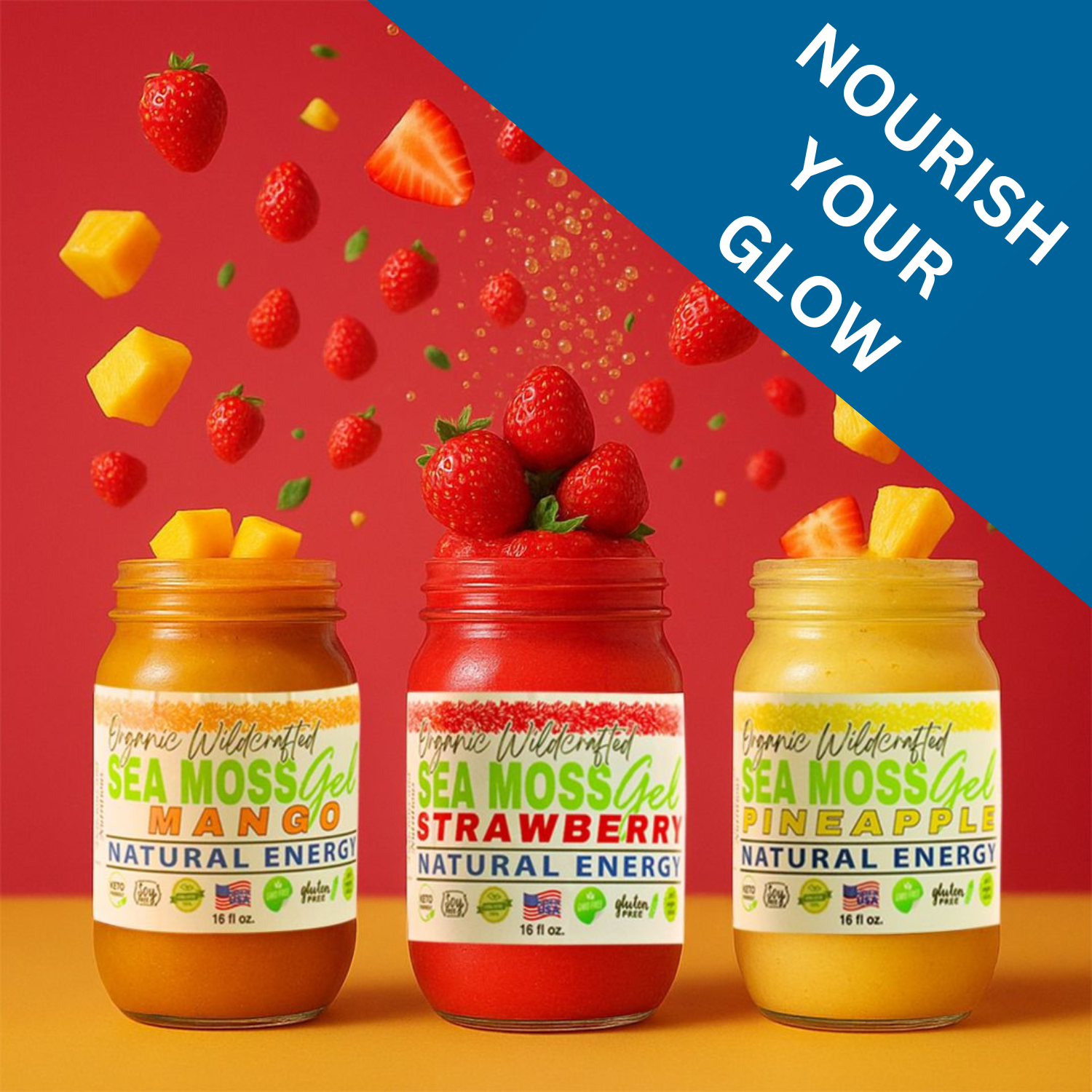 Can’t choose just one? Now you don’t have to. The Island Vibes Trio Bundle brings together our most beloved fruit-infused sea moss gels—Mango, Strawberry, and Pineapple—so you can rotate flavors, share with family, or just indulge in the full spectrum of tropical wellness.